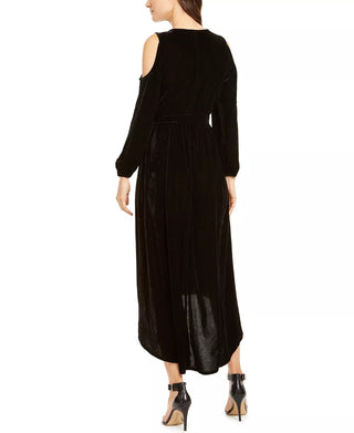 NY Collection Vestido feminino de veludo com ombros descobertos e amarração na cintura, preto, tamanho PXL
