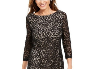 Vestido curto feminino Jessica Howard com lantejoulas e renda, manga 3/4, gola redonda, para uso no trabalho, preto, tamanho 14 P