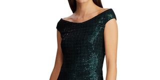 Vestido Ralph Lauren Feminino com Lantejoulas, Manga Curta, Ombro a Ombro, Comprimento Médio, Formal, Verde, Tamanho 14