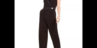 Macacão feminino Vince Camuto com decote em V e perna reta, preto, tamanho 14