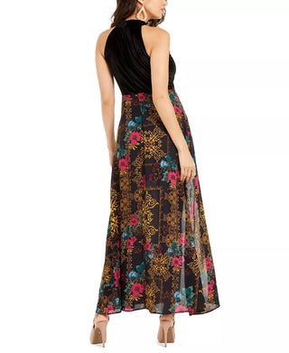 Vestido longo estampado com decote halter feminino Thalia Sodi, preto, tamanho extrapequeno