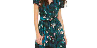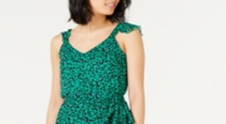 Vestido feminino com babados e estampa animal da INC International Concepts, estampa de leopardo esmeralda, verde, tamanho 18