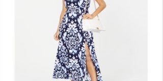 Vestido longo estampado feminino INC International Concepts, azul, tamanho pequeno e pequeno