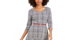 Vestido feminino xadrez justo e evasê NY Collection, preto, tamanho pequeno e pequeno