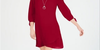 Vestido feminino com mangas amarradas e colar, tamanho pequeno, vermelho, JM Collection