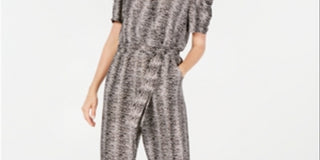 Macacão feminino estampado com manga bufante da NY Collection, preto, tamanho pequeno XS