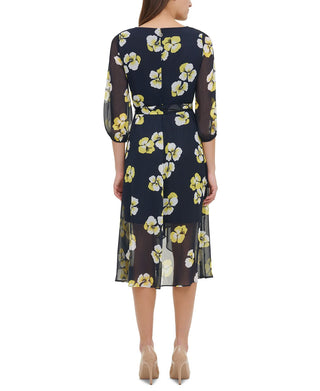 Vestido estilo envelope com estampa floral Calvin Klein feminino, azul, tamanho 0 pequeno