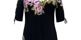 Vestido feminino Kate Bouquet com estampa floral e manga franzida, preto, tamanho pequeno, da JM Collection