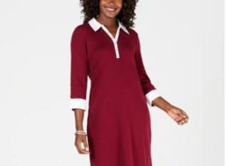 Vestido-camisa de algodão com acabamento contrastante Karen Scott feminino, vermelho, tamanho pequeno e pequeno