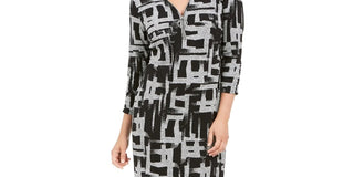 Vestido feminino JM Collection com estampa de bolinhas pontilhadas e zíper frontal, preto, tamanho grande