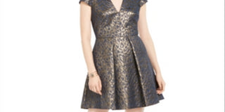 Vestido feminino Vince Camuto com corte justo e flare em jacquard metálico, azul, tamanho 4