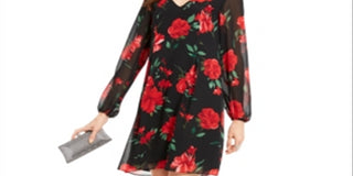 Vestido feminino de chiffon com estampa de rosas e laço nas costas, preto, tamanho extragrande, da INC International Concepts