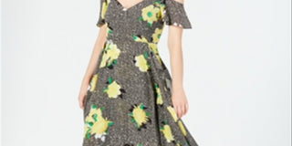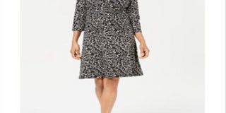 Vestido estampado com ombros descobertos feminino INC International Concepts, preto, tamanho 16, pequeno