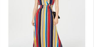 Vestido longo listrado com babados INC International Concepts para mulheres, tamanho pequeno, vermelho