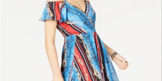 Vestido feminino estampado com ombros descobertos da INC International Concepts, azul, vários tamanhos, 12, pequeno