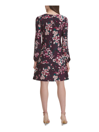 Vestido evasê feminino Tommy Hilfiger Floral Jersey Roxo Tamanho 4