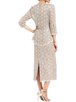 Vestido feminino R&M Richards, sem mangas, com lantejoulas, decote redondo, comprimento chá, marrom, tamanho 18