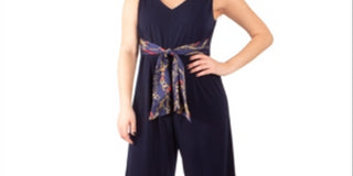 1.STATE Macacão feminino estampado com frente cruzada, azul, tamanho 12