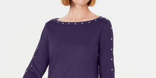 Vestido feminino Karen Scott com decote canoa e tachas, roxo, tamanho pequeno G