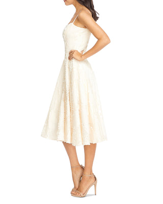 Vestido de coquetel feminino Dress the Population Flora com lantejoulas e ajuste evasê, tamanho X-Large, branco