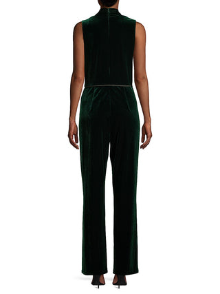 Macacão feminino Vince Camuto de veludo com cinto e borlas, verde, tamanho 8