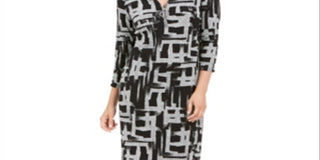 Vestido feminino estampado com zíper frontal, preto, tamanho extragrande, da coleção JM