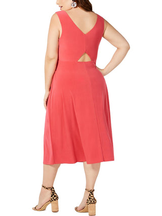 Vestido feminino Love Squared plus size com amarração na cintura e decote em V, cor sólida, laranja, tamanho 3X