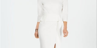 Vestido tubinho com babados angulares Vince Camuto feminino, branco, tamanho 6