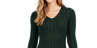 Vestido curto evasê feminino Jessica Howard, manga 3/4, decote em V, verde, tamanho extragrande