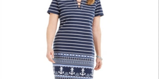 Vestido feminino Karen Scott com amarração e decote dividido, azul, tamanho pequeno