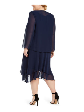 Vestido feminino plus size 2 peças com decote em V e decote em V, azul, tamanho 14W