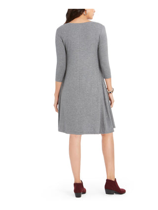 Vestido feminino estilo & co, manga 3/4, decote em V, acima do joelho, ajuste flare, cinza, tamanho pequeno pequeno