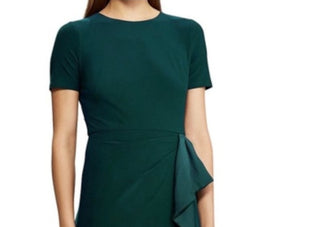 Vestido de festa Ralph Lauren feminino, com zíper, manga curta, gola alta, acima do joelho, tamanho 14, pequeno
