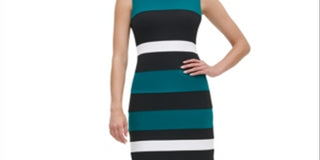 Vestido tubinho feminino Tommy Hilfiger com estampa de blocos de cores, sem mangas, gola alta, comprimento até o joelho, para usar no trabalho, preto, tamanho 18