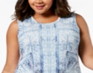 Vestido rodado sem mangas estampado feminino Style & Co, azul, tamanho pequeno