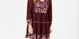Vestido feminino estilo camponês de malha estampada vermelho tamanho pequeno