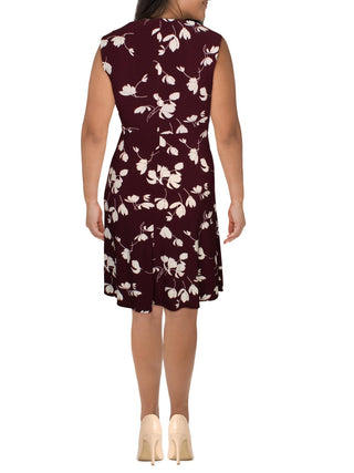 Vestido feminino floral cor de vinho com manga curta, decote em V, comprimento até o joelho, para usar no trabalho, roxo, tamanho 14W