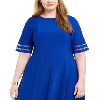 Vestido feminino plus size Jessica Howard Illusion-Detail Fit & Flare Azul Tamanho 18W