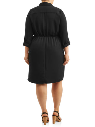 Vestido de camisa feminino LOVE SQUARED com manga 3/4 e comprimento até o joelho, preto, tamanho 1X
