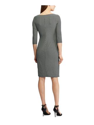 Vestido de malha franzido feminino Lauren by Ralph Lauren, preto/creme colonial, tamanho 12P
