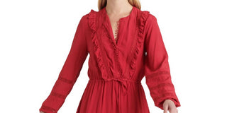 Lucky Brand Vestido curto feminino Parker com acabamento em picot e babados, vermelho, tamanho médio