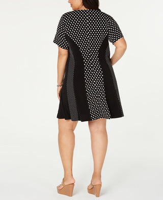 Vestido feminino Michael Kors Plus Size com estampa de bolinhas, elástico, ajuste evasê, preto, tamanho 1X