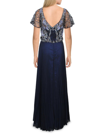 Vestido formal feminino JM Collection de manga curta com pregas e acordeão, azul, tamanho 12