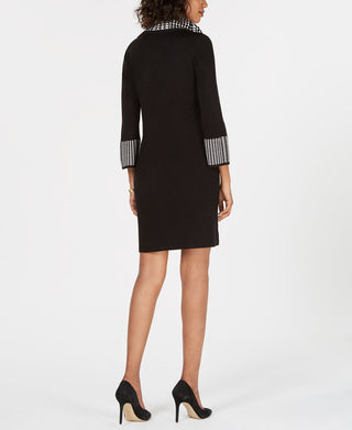 Vestido feminino Jessica Howard de manga comprida com decote redondo e bainha acima do joelho, estilo pied-de-poule, preto, tamanho pequeno