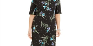 Vestido feminino estampado com decote canoa Karen Scott, preto, tamanho pequeno