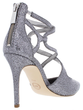 Michael Kors Catia Salto Alto Feminino Glitter Bico Fino Prata/Azul Tamanho 6