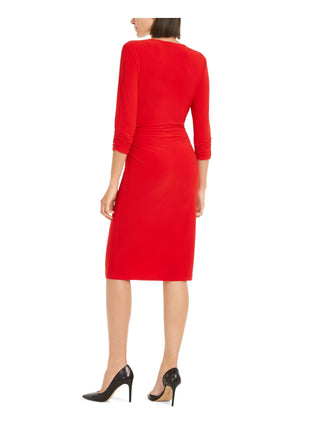 Vestido feminino INC Ring-Hardware franzido MIDI vermelho tamanho pequeno