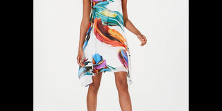 Vestido trapézio estampado de chiffon Robbie Bee para mulheres - Branco, tamanho 10 P