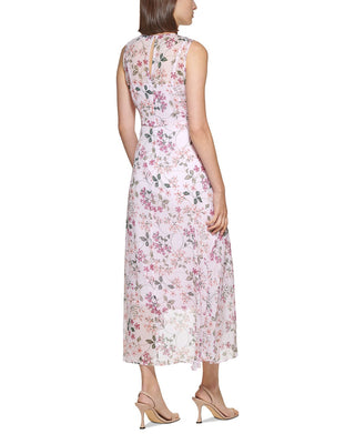 Vestido longo Calvin Klein feminino com estampa floral e sobrepeliz, rosa, tamanho 4