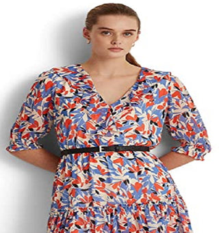 Vestido Ralph Lauren Feminino Floral Crinkled Georgette Azul Tamanho 12